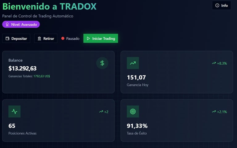 La información contenida en este sitio web es solo para fines informativos y educativos. Tradox no garantiza resultados específicos, ya que toda inversión en los mercados financieros conlleva riesgos. El uso del software de trading automático debe hacerse bajo su propia responsabilidad.